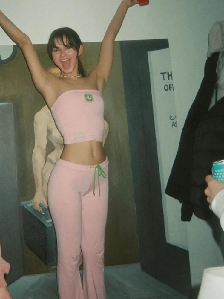 - Style: Two-piece lounge set (tube top & pants)